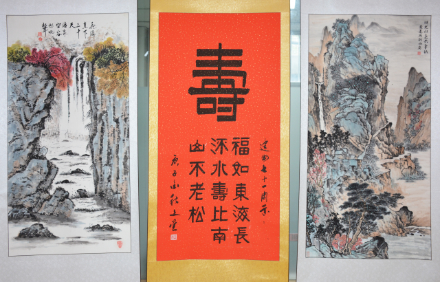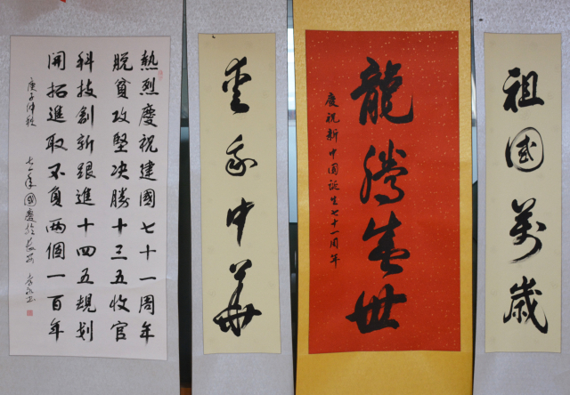 此次展览共组织书画作品近百件,经过认真品评,最终遴选、装裱,并向大众集中展览了47件优秀作品,这些展览的作品既有行、草、楷、隶书写的诗词歌赋,如《毛泽东诗词 长征》,又有原创作品“祖国万岁”“美丽中国”“龙腾盛世”“热烈庆祝建国七十一周年”等刚劲有力的书法作品,还有“颗粒归仓”“湖光山色”“江山如画”“竹报平安”等妙笔生花、栩栩如生的精美画作,这些作品主题明确,积极向上,内容丰富、意义深远,充满了正能量。老同志们通过书画作品,展现和勾勒出了伟大祖国的沧桑巨变和辉煌成就,表达了西光所广大离退休职工、家属及书画爱好者对党、对祖国、对人民大众的无限热爱,对美好生活的憧憬向往,弘扬了中华优秀传统书画艺术,明确了新时代文化自信的价值导向。