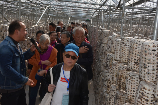 在驻村干部的带领下,老同志们带着疑问和好奇重走了习近平总书记参观考察的路线,沿路大家参观了莲藕种植基地、中药材观赏园、地载木耳种植区、塔载木耳种植区、连栋木耳大棚、培训中心、木耳主题公园、户外休闲体验区等。参观过程中,大家了解了木耳管理技术流程:从原料加工到栽培技术要点,从产品研发到市场销售,从指导农户脱贫再到发展规划。从讲解中还知晓了所谓“两借两还”,就是“借袋还耳”“借棚还耳”,即借给村民菌袋和大棚,还回木耳就行。这样做就是为了打消村民的疑虑,保护农户的积极性,最终促进他们通过自己的劳动增收致富。不仅如此,村上还与农户签订借还协议,由合作社免费向农户提供木耳菌包并进行技术指导,农户打孔、挂袋、采耳、晾晒、交耳。根据“借袋还耳”合同,贫困户通过自己的劳作,换回真金白银,使木耳成为脱贫致富的“金耳朵”,从而走上致富之路。