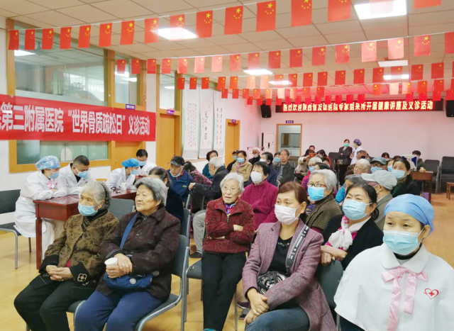 10月20日是世界骨质疏松日,为了落实所领导对离退休职工的健康关怀,增进老同志对骨科疾病防治知识的了解,提高大家的健康保健意识,满足同志们对骨科疾病诊治咨询的需求,20日上午,离退办特邀西安医学院第三附属医院骨科主任李强来所作专题报告,并邀请该院骨科、呼吸科、心内科共同组成的12人专家组来所,开展健康义诊咨询活动。约330人次离退休职工、家属及老年大学学员亲临现场,聆听讲座、诊疗咨询。