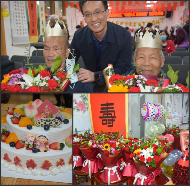 最后,离退休7个党支部的支部书记、委员及骨干同志们为在场的七位90岁以上高龄的老寿星献上了盛开的鲜花,伴随着《生日快乐》歌的悠扬乐曲,一份份精美甜蜜的蛋糕也送到了现场的七位老寿星和所有参会的老同志手中,幸福的笑容洋溢在每个人的脸上。