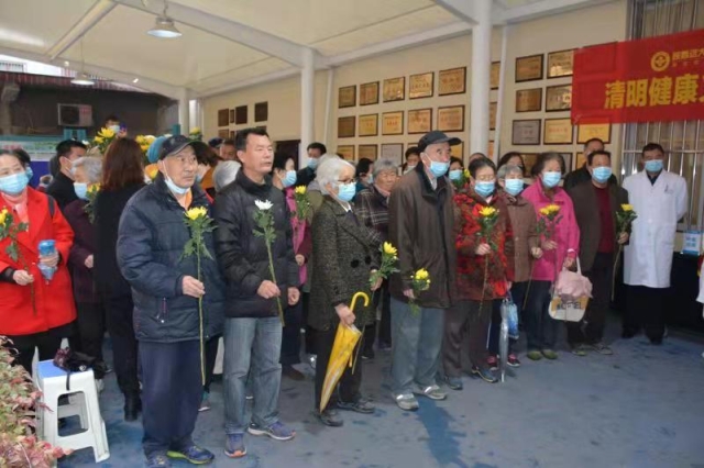 清明节是中华民族缅怀先烈、祭奠逝者、追思故人的传统节日。直到今天,清明节祭拜祖先、悼念已逝亲人的习俗仍然很盛行,倡导绿色、文明、低碳、节俭的现代殡葬祭扫新风,是新时代移风易俗的好方式。活动现场,老同志们认真聆听了社区工作人员宣读的倡议书:一是错峰祭扫,安全出行。二是保护环境,文明祭祀。三是厚养礼葬,节俭治丧。四是移风易俗,传承美德 。接下来,大家还共同回顾了“全国卫生健康系统新冠肺炎疫情防控工作先进个人”李文亮的先进事迹。随后大家在社区工作人员的引导下通过书写哀思、敬献花朵等简短的祭奠活动,寄托了对革命先烈和逝者亲属的哀思。