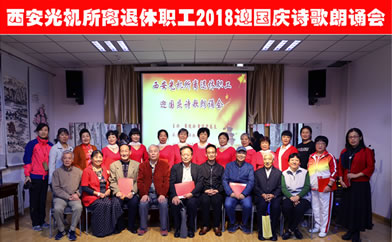 西安光机所离退休党总支举办迎国庆主题朗诵会为庆祝中华人民共和国69华诞,展现老同志浓烈的爱国爱党情怀,9月30日上午,由离退休党总支主办,老年朗诵协会承办的“祖国在我心中”诗歌朗诵会,在...2018-10-09