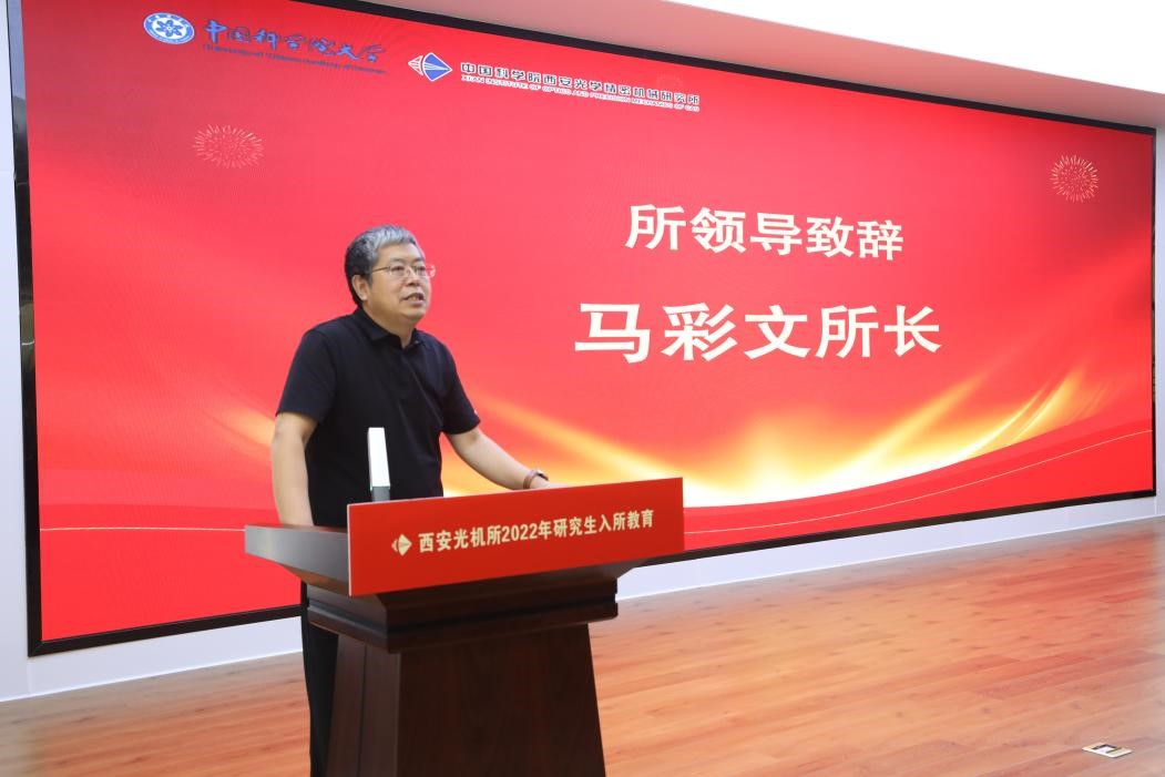 马彩文首先代表研究所热烈欢迎同学们回所继续学业,他对全体研究生过去一年在国科大的学习表现给予了充分肯定。2022年是西安光机所建所六十周年的时刻,马彩文重点介绍了这六十年来研究所的里程碑事件和重大科研创新成果。他寄语同学们要坚定科技报国的理想信念,树立正确的价值导向,做科学家精神的传承者,珍惜学习机会,努力为祖国建设多做贡献。