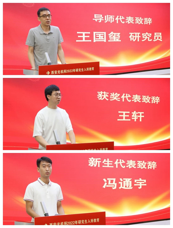 王国玺研究员代表导师发言,他分享了在西光所十三年来的工作经验和心得,勉励新生要不忘初心、牢记西光人的使命,踔厉奋发,奋楫笃行。