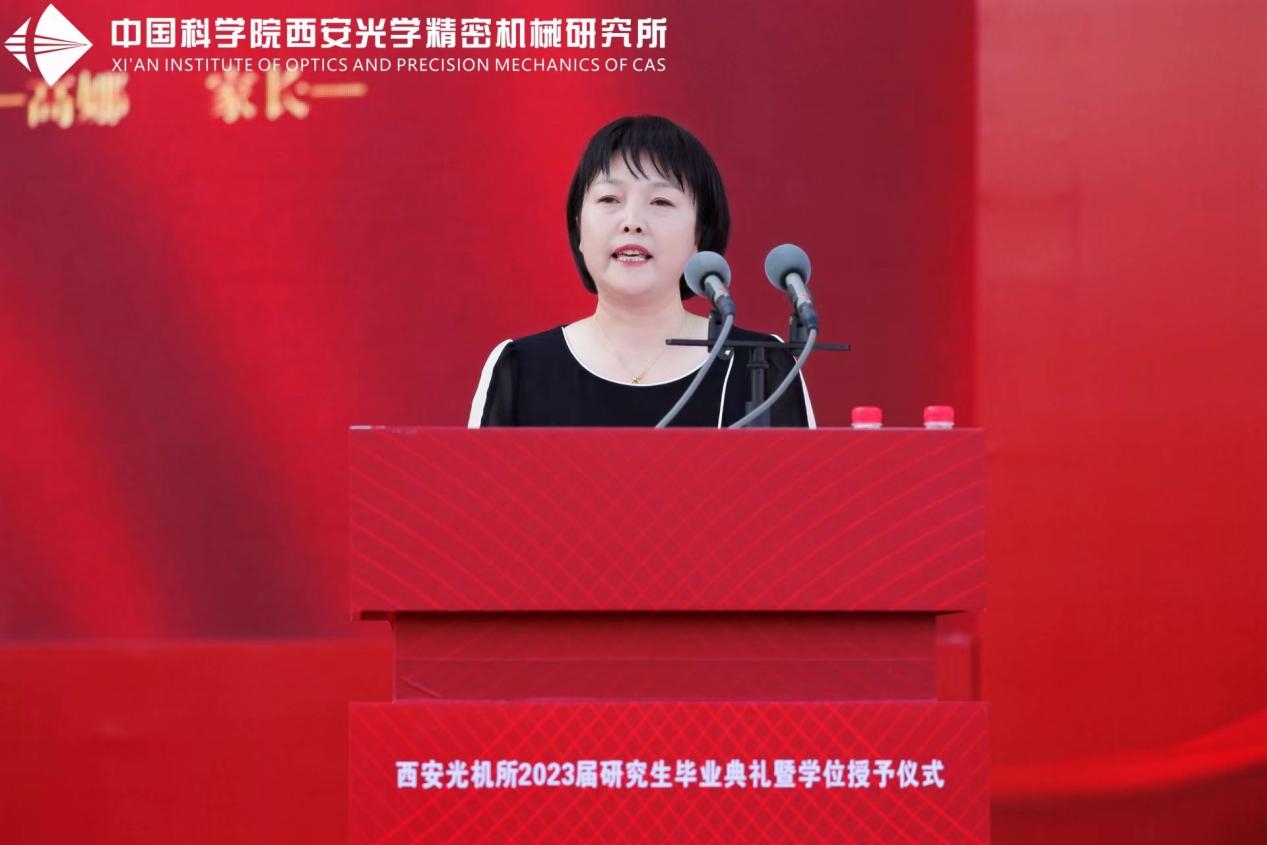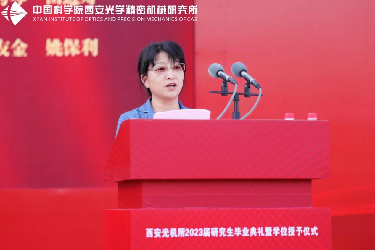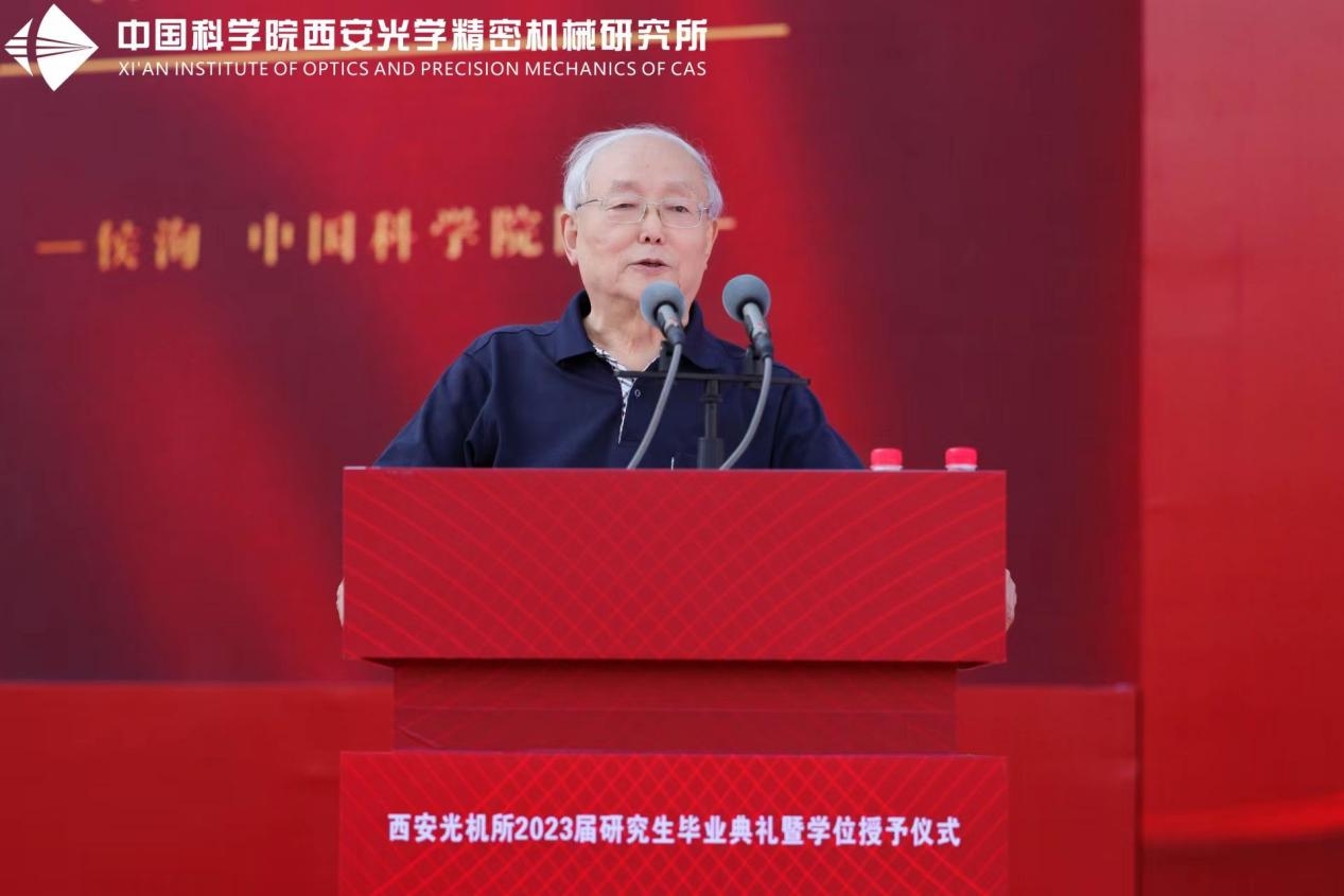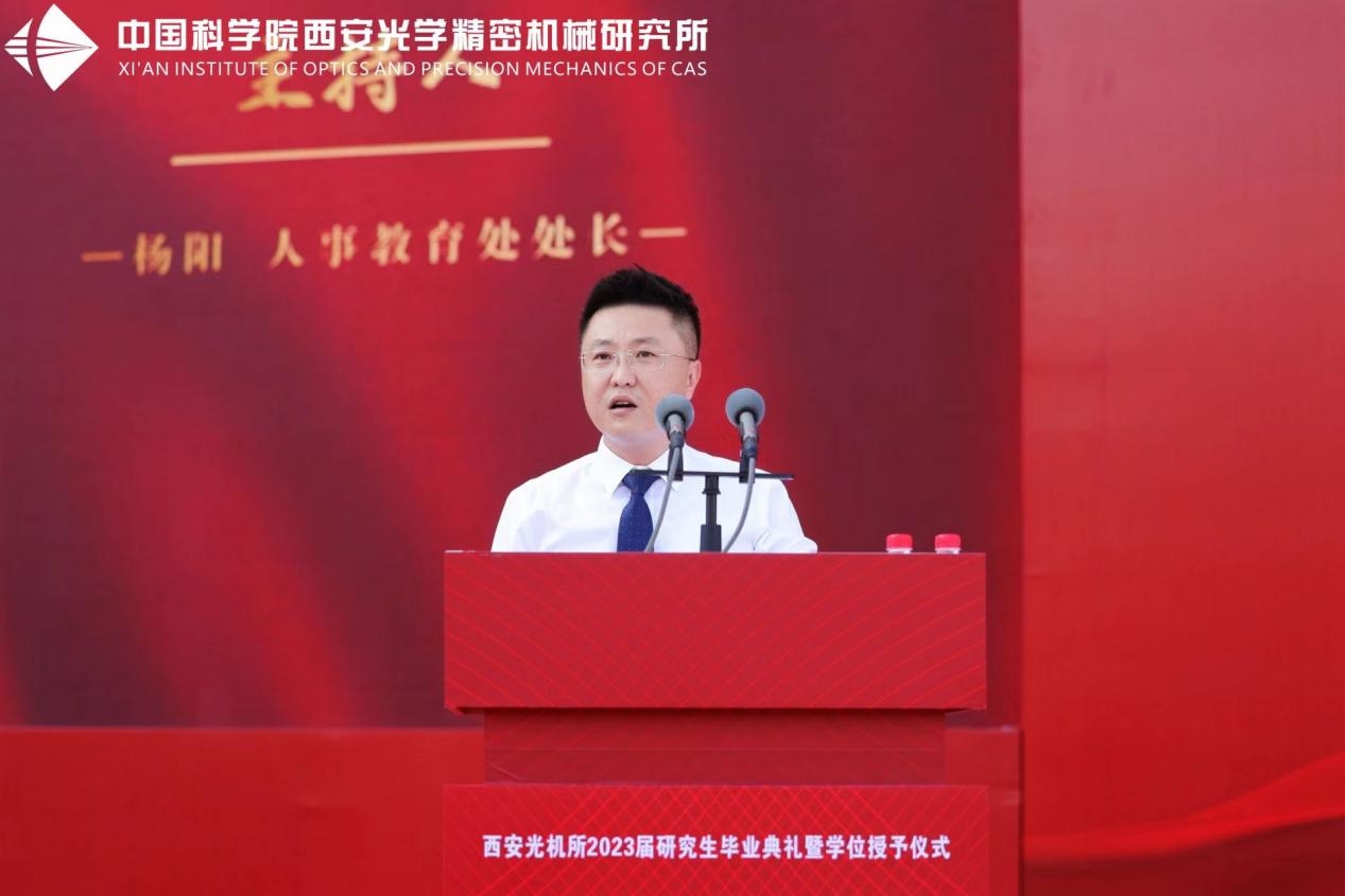 中科院院士侯洵先生、西安光机所党政领导、学位评定委员会委员、所管理支撑部门负责人,校友、研究生导师、毕业生家长、在学研究生代表,以及2023届全体毕业生,共计三百余人齐聚一堂,共襄盛典。毕业典礼由所人事教育处处长杨阳主持。