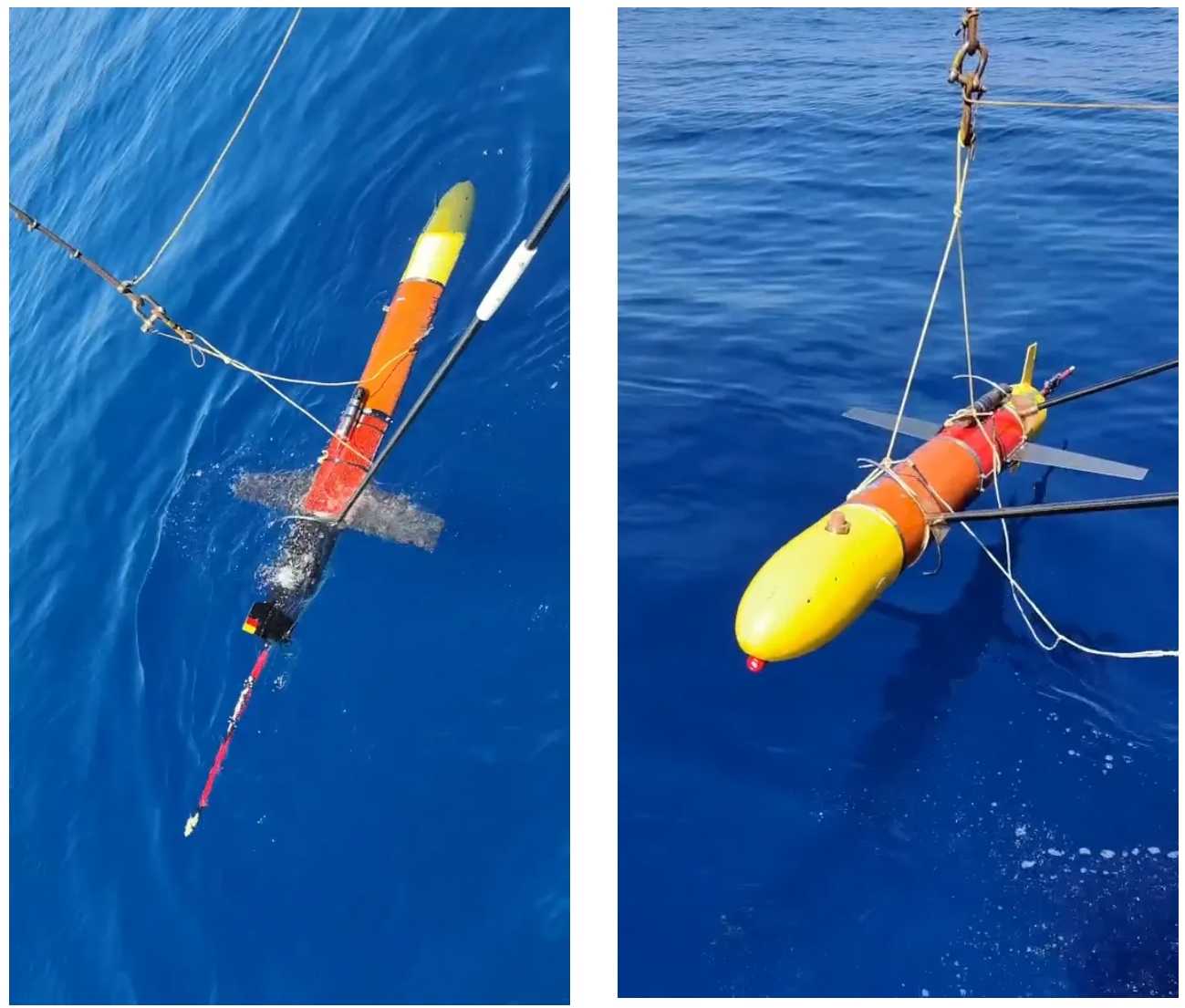 图 自研海洋生物地球化学原位传感器搭载Glider海试布放现场