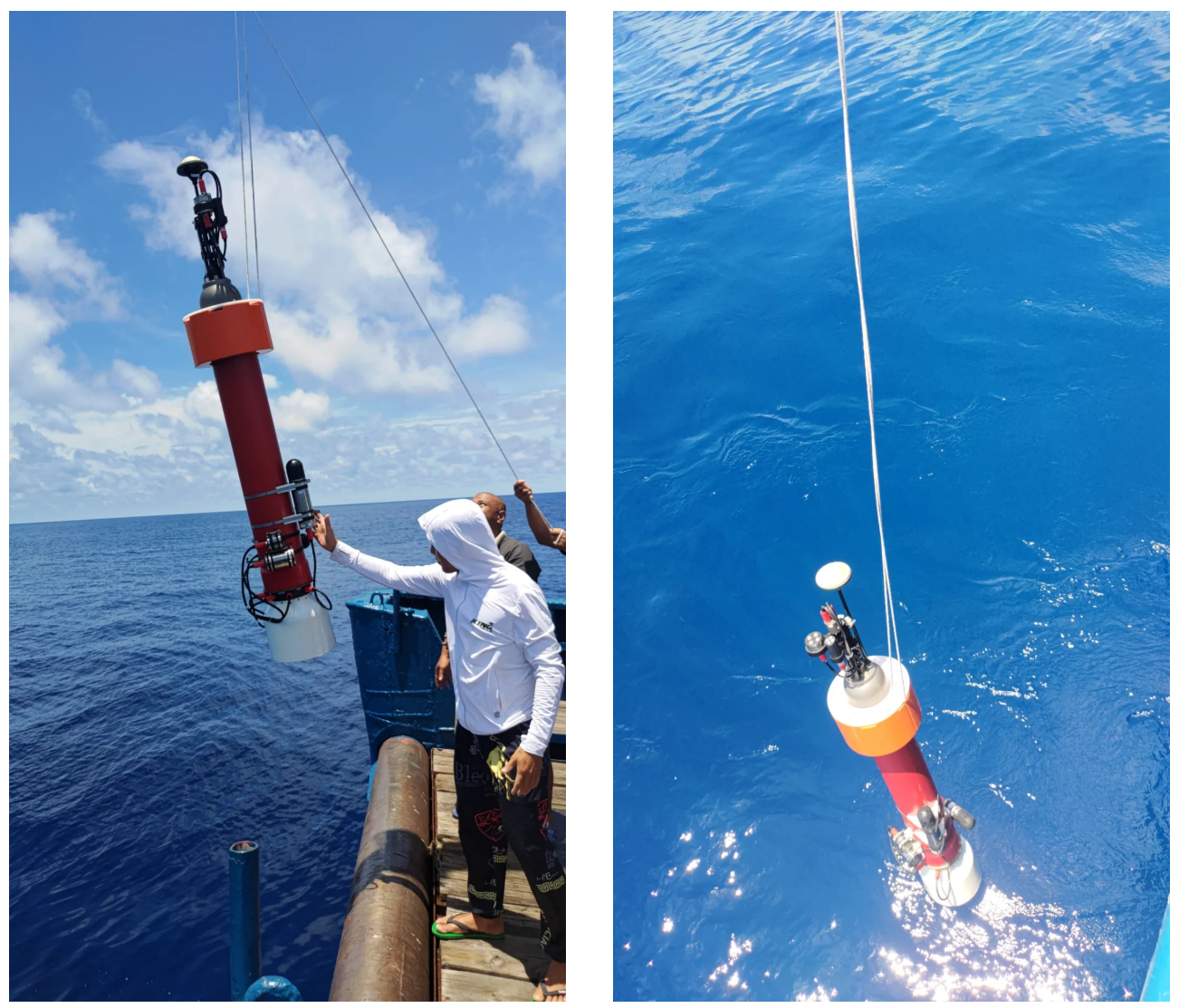 图 自研海洋生物地球化学原位传感器搭载Argo浮标海试布放现场