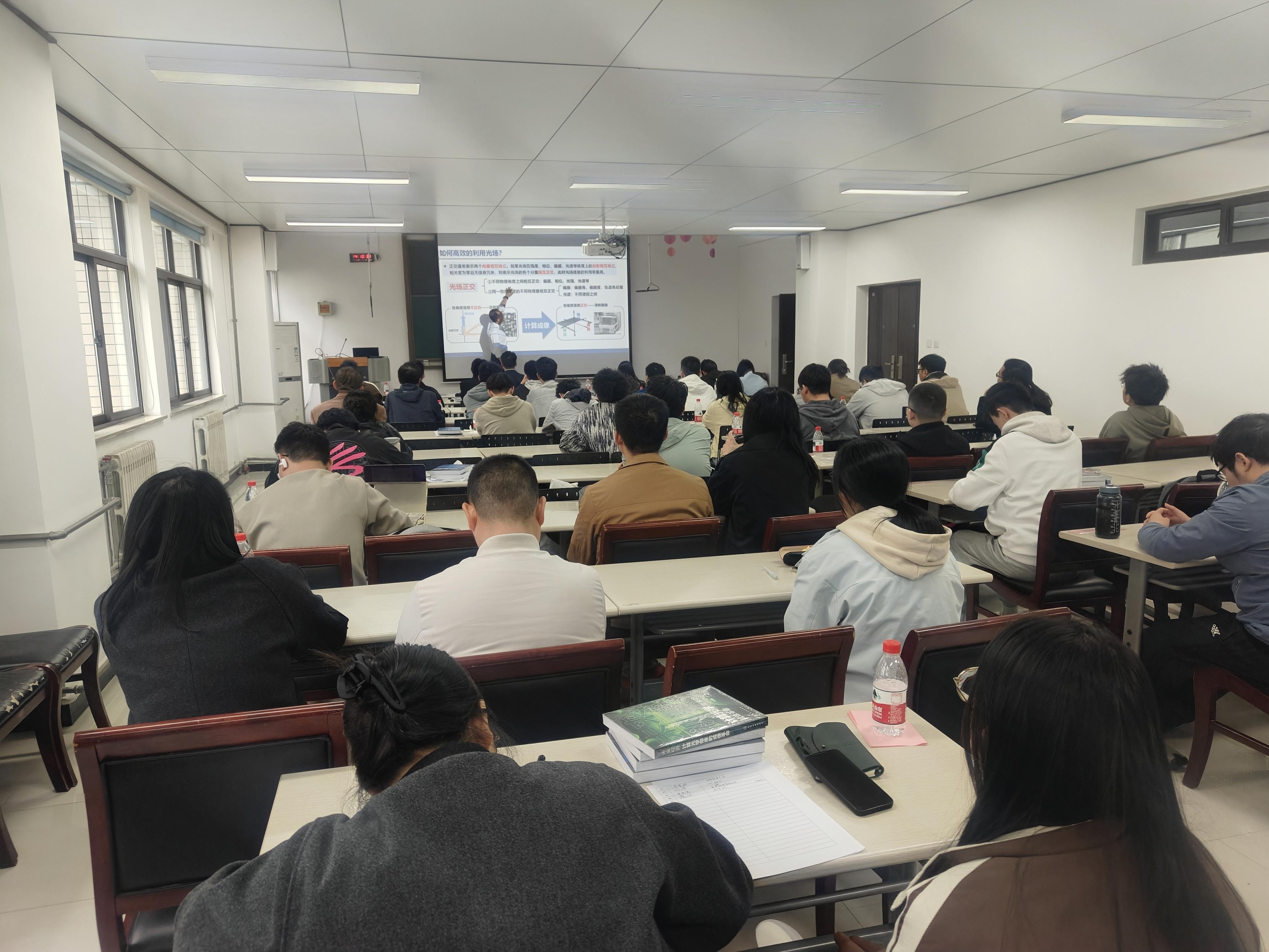 培训班锚定计算成像领域前沿趋势与产业应用需求,邀请5位领域专家学者围绕散射成像、单像素成像、计算光学相位成像等主题作专题授课,课程体系兼具前沿性、系统性与实用性,内容涵盖基础理论、案例分析、实践操作等多个维度。互动研讨环节,培训人员就人工智能赋能计算成像、计算成像前沿发展等议题进行了深入探讨,有效打通理论到实践的转化路径,切实助力学员夯实理论功底、提升实操技能。