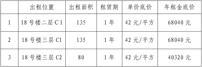 中国科学院西安光学精密机械研究所拟对位于边家村地铁5号线A出口我所友谊路园区18号楼南侧临街二层、三层有如下房产已到期,现公开招租,公告如下: